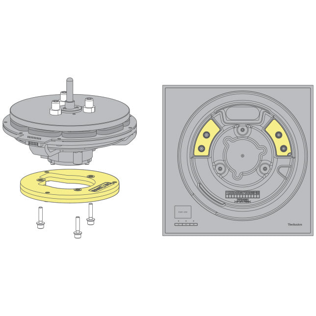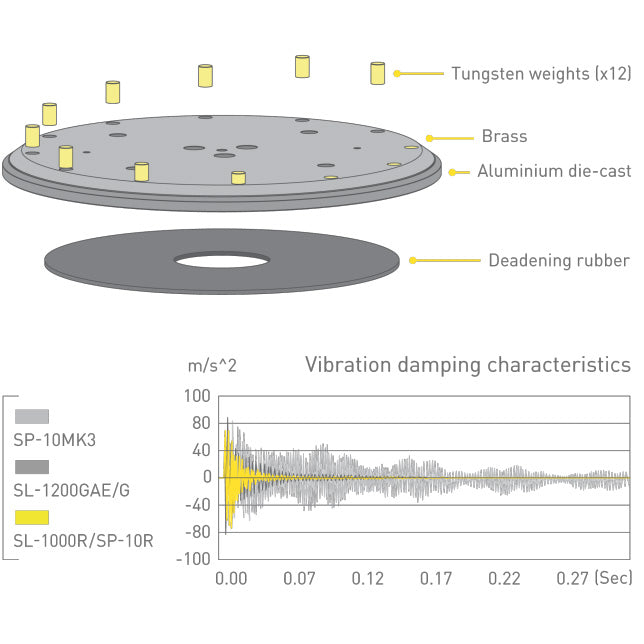 • The turntable platter positions tungsten weights for high rigidity and excellent vibration damping