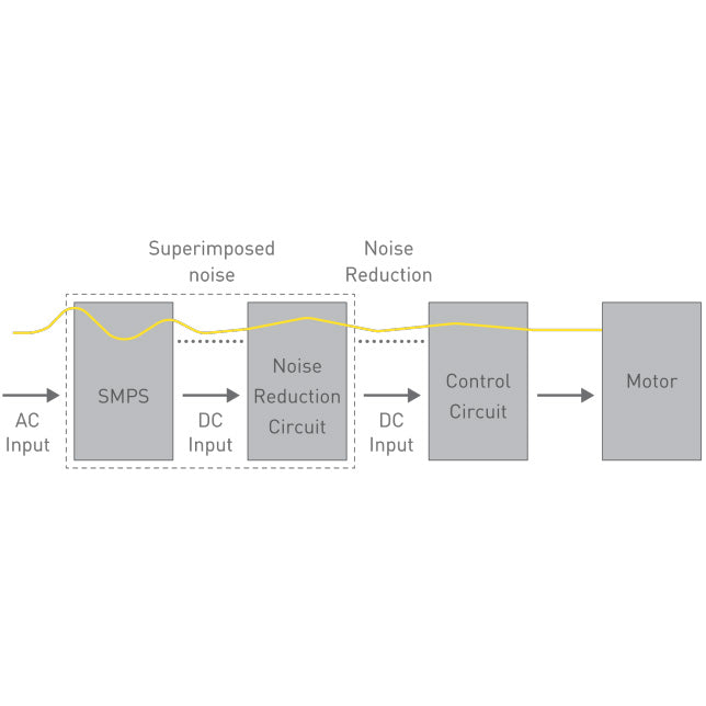 The control unit is separated from the main unit to suppress the effects of unwanted noise on the main unit. In order to achieve a power supply circuit that provides good regulation for high torque, a switching power supply is used. To reduce the noise reaching the pickup, the switching power supply is equipped with a unique technology that provides a voltage supply with minimal noise by a newly developed "unwanted noise reduction circuit". Also, to minimize the noise even during communication, a highly reliable system that resists the effects of external noise is used for communication between the main unit and the control unit. These thorough noise-reduction measures achieve the world's highest-level S/N.