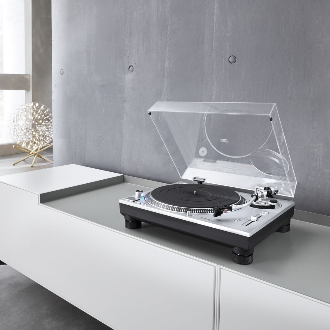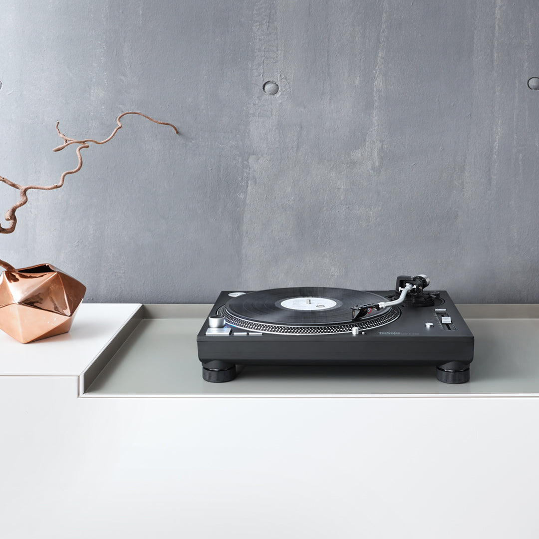The new standard model inheriting the technology of its predecessors, the Technics SL-1200GR was developed as a reference direct-drive turntable for the next generation, inviting more audio enthusiasts to enjoy music with the rich, robust sound of analogue records.