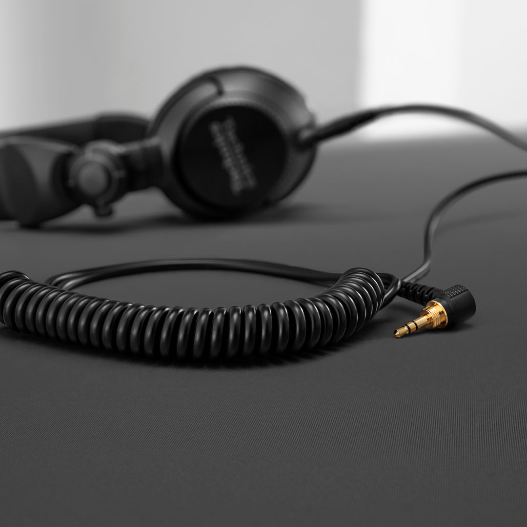The detachable cord is easy to clean and maintain. A locking mechanism is provided to prevent accidental detachment of the cord during use. The stretchable coiled cord, coupled with the L-type plug which resists internal wire breakage, enables extra ease of use and high durability. It withstands harsh and intense usage by professional DJs.