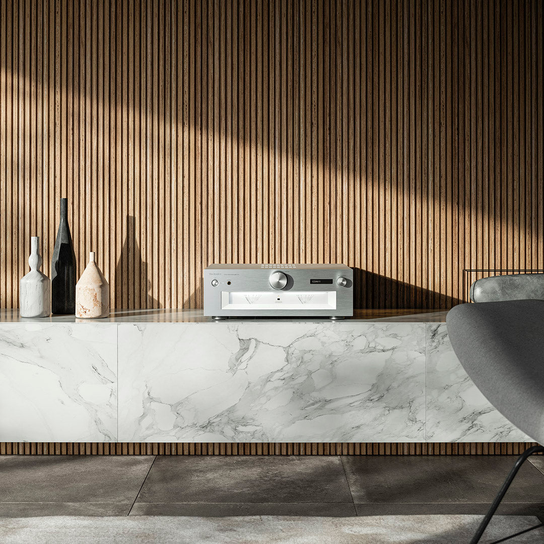 The SU-G700M2 Stereo Integrated Amp has inherited the new domain of sound attained by the SU-R1000 Reference Class Amp. In addition to the full-digital JENO Engine with outstanding sound expressivity, the SU-G700M2 comes with a new power supply system that offers high-speed response and low noise. The three-section configuration is packed with noise and vibration prevention measures. The SU-G700M2 is complete with Phono MC input. It delivers extremely pure and dynamic sound regardless of whether the sound source is analog or digital.