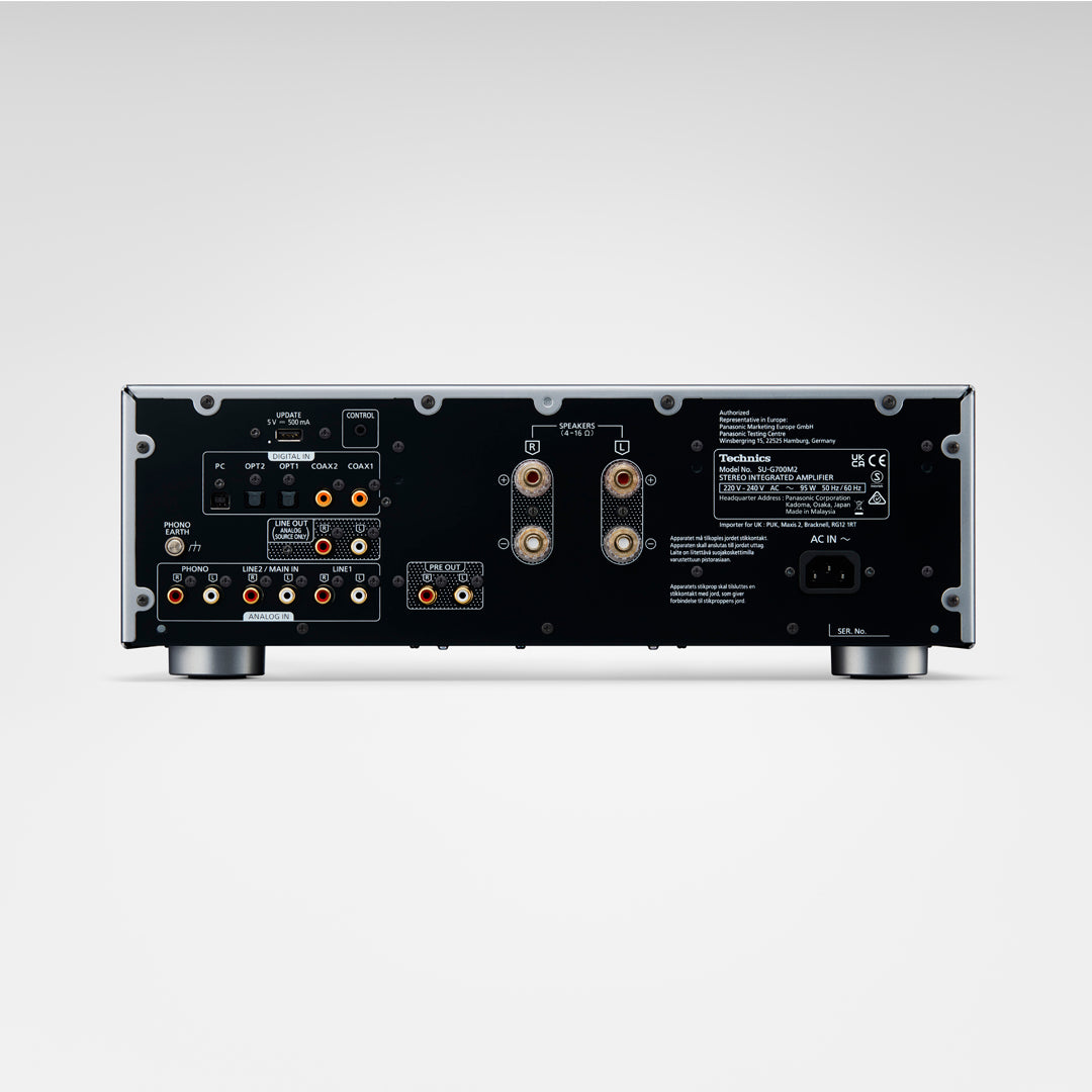A full digital amp capable of reproducing extremely pure and dynamic sound, the SU-G700M2 Stereo Integrated Amplifier has inherited Technics full-digital core amplifier technologies such as the JENO Engine (Jitter Elimination and Noise-Shaping Optimization) for highest signal precision free of jitter and distortion, and LAPC (Load Adaptive Phase Calibration) for optimum matching to any speaker.