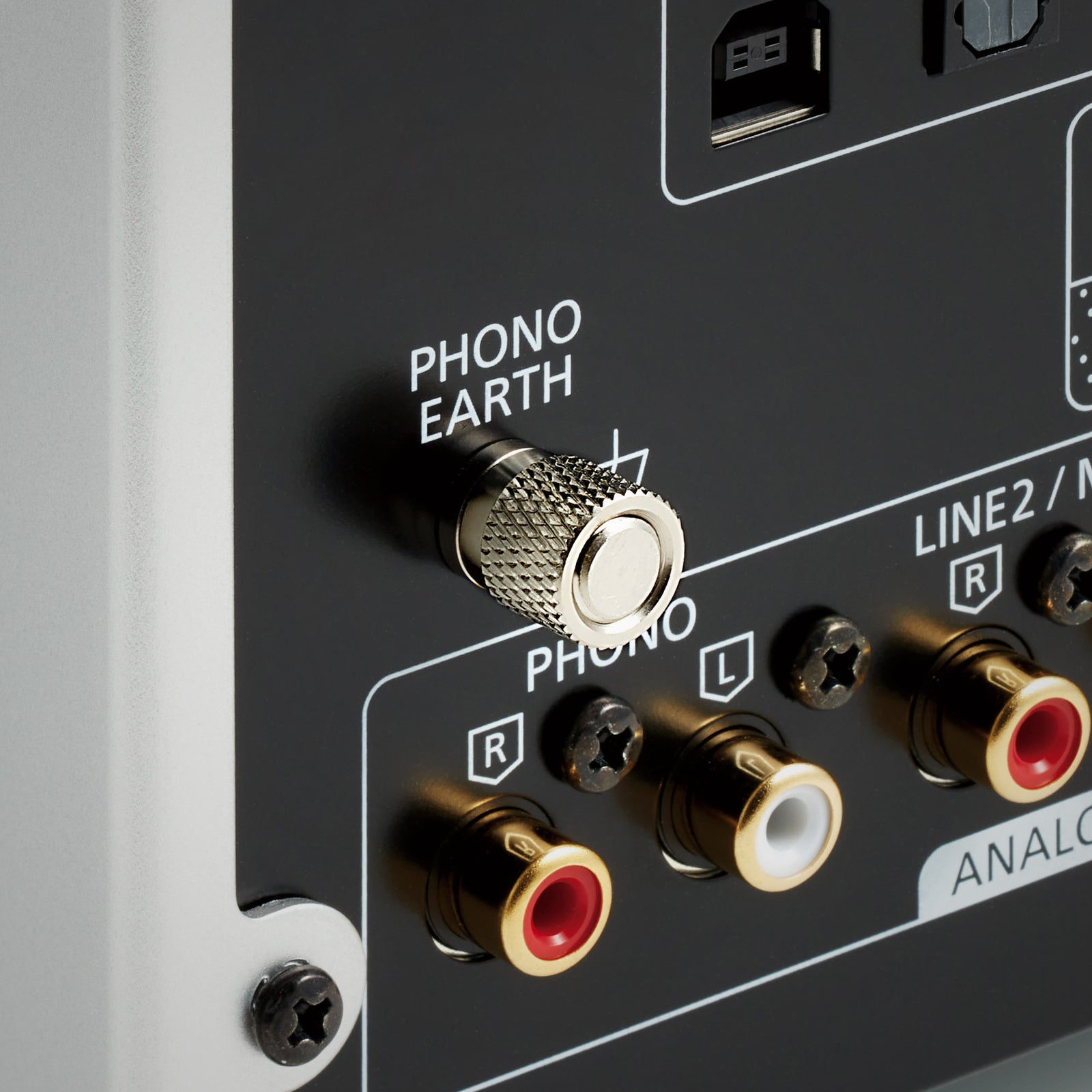 PHONO MC input is now supported. The PHONO input achieves low noise by using a differential parallel connection configuration of a first-stage, low-noise FET. In addition, four-level gain adjustment enables selection of the best gain according to the cartridge output. This enables optimal playback of high-grade analogue recorded sound sources tailored to the user’s environment.