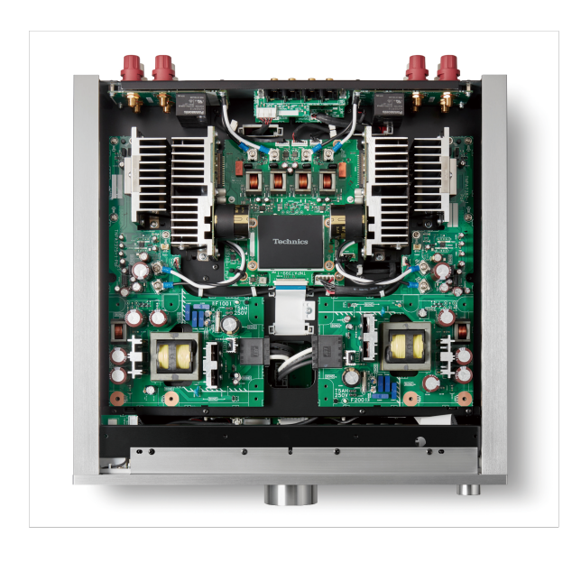 The phono input section and analogue input section feature a full-discrete circuit design. Technics has realized an ideal, symmetrical circuit layout and performed meticulous tuning. The new circuits prevent interference between the right and left channels and achieve excellent channel separation. Furthermore, the phono input section and XLR input section employ completely balanced transmission to ensure high-purity signal transmission with minimum effect of noise. The USB input circuit in the digital input section is equipped with a capacitor of high-quality ruby mica and a power conditioner with nonmagnetic carbon film resistors for blocking electrical noise e.g. from a PC and for minimizing the effect of external noise. The A/D converter incorporates a high-performance chip made by Asahi Kasei Microdevices (AKM) for high-precision A/D conversion. Thus, the SU-R1000 reproduces outstanding sound quality from any analogue or digital input sources.