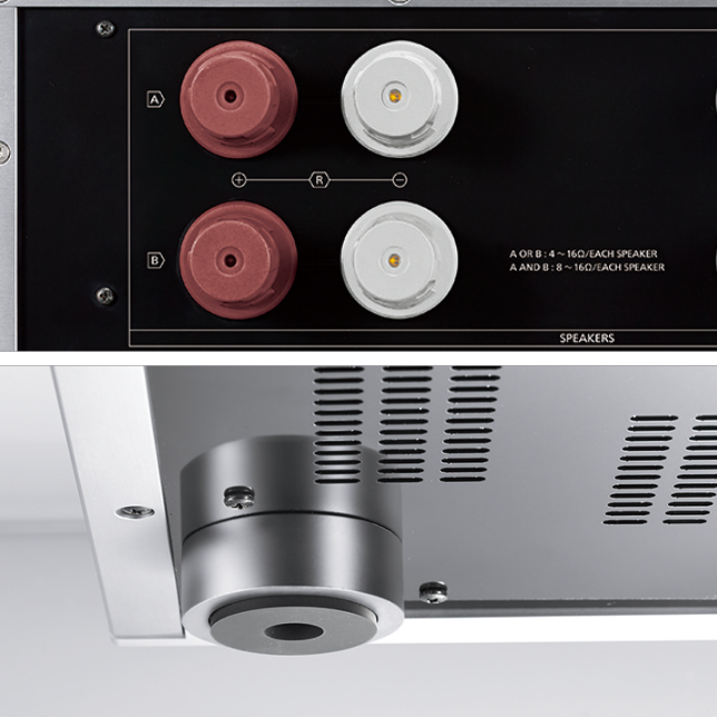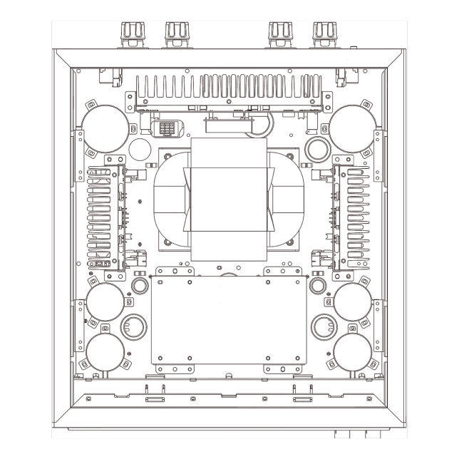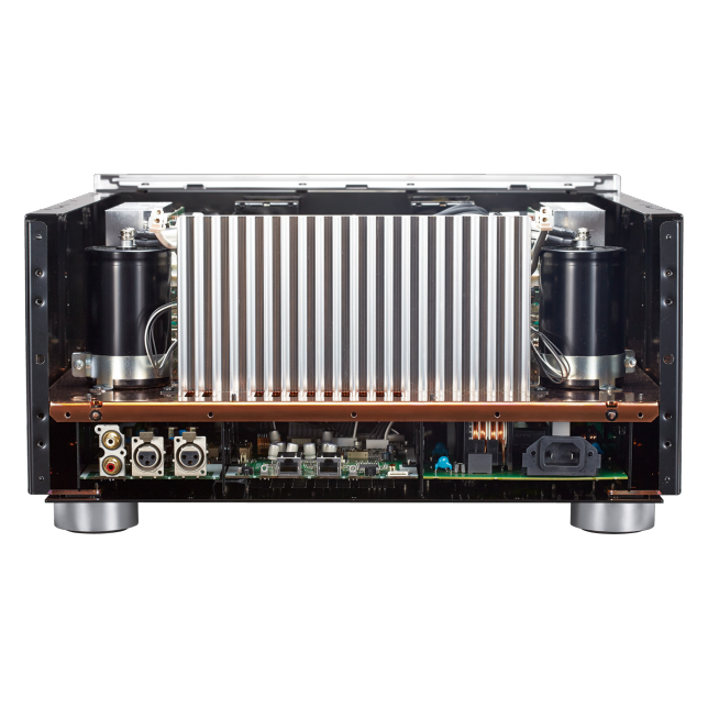 The main amplifier layout separates the left and right channel signal paths completely, all the way back to the secondary winding on the power transformer, to prevent mutual interference and also achieve an ideal weight balance. This design gives optimal stereo separation, and also allows the two channels to be laid out in ‘mirror image’,