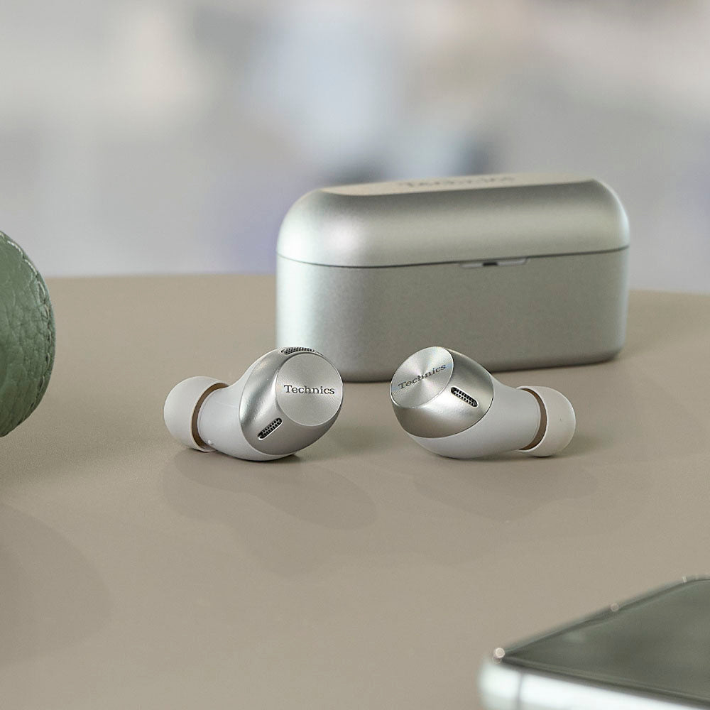 The Technics AZ40M2 True Wireless earbuds let you enjoy rich, natural sound, with the tools you need for stress-free listening. For clear calls, AZ40M2 uses beamforming technology to capture and transmit your voice distinctly, with Active Noise Cancelling to reduce outside noise. Three-point multipoint connectivity lets you connect 3 Bluetooth™-enabled devices (like your computer, phone and tablet) simultaneously, for seamless device switching.